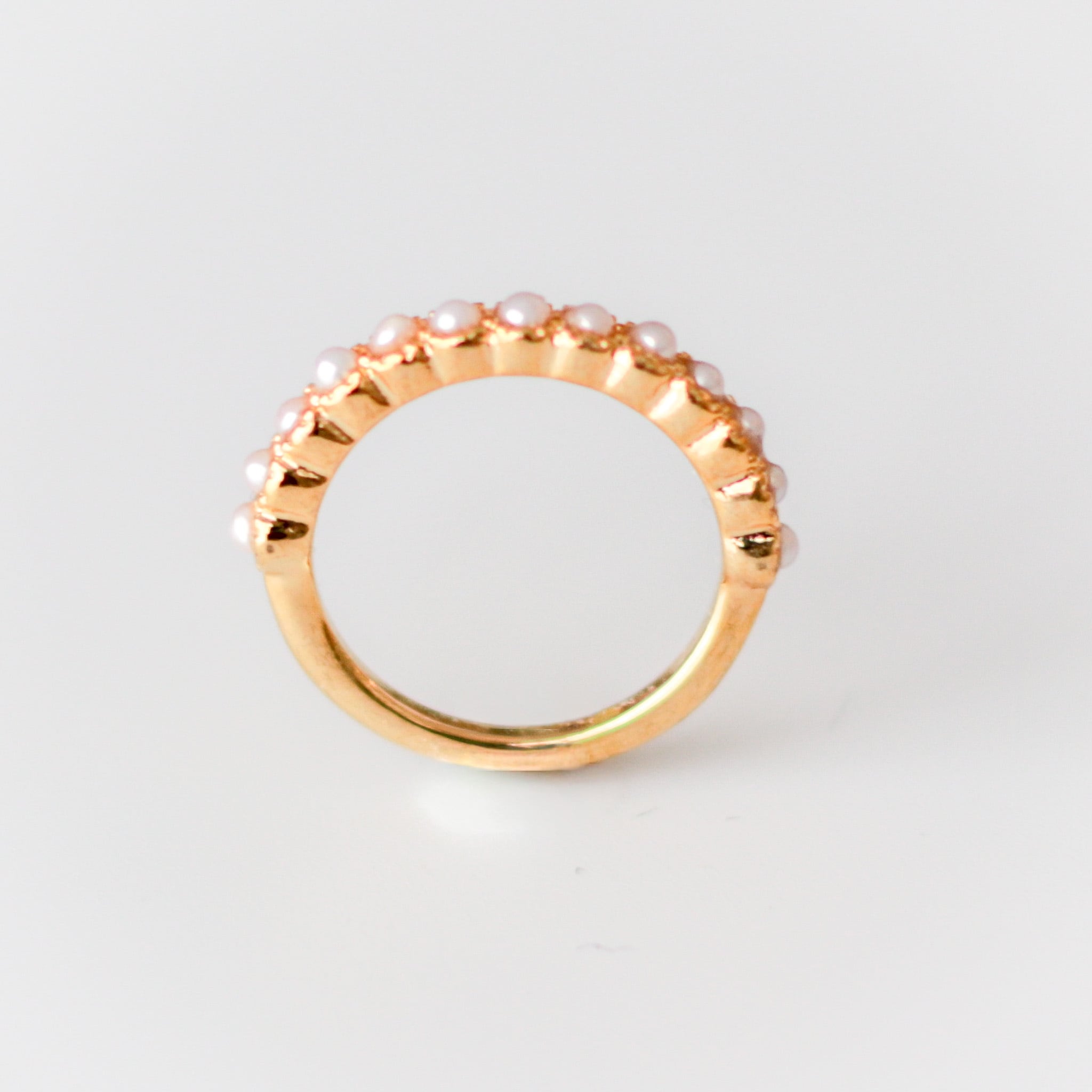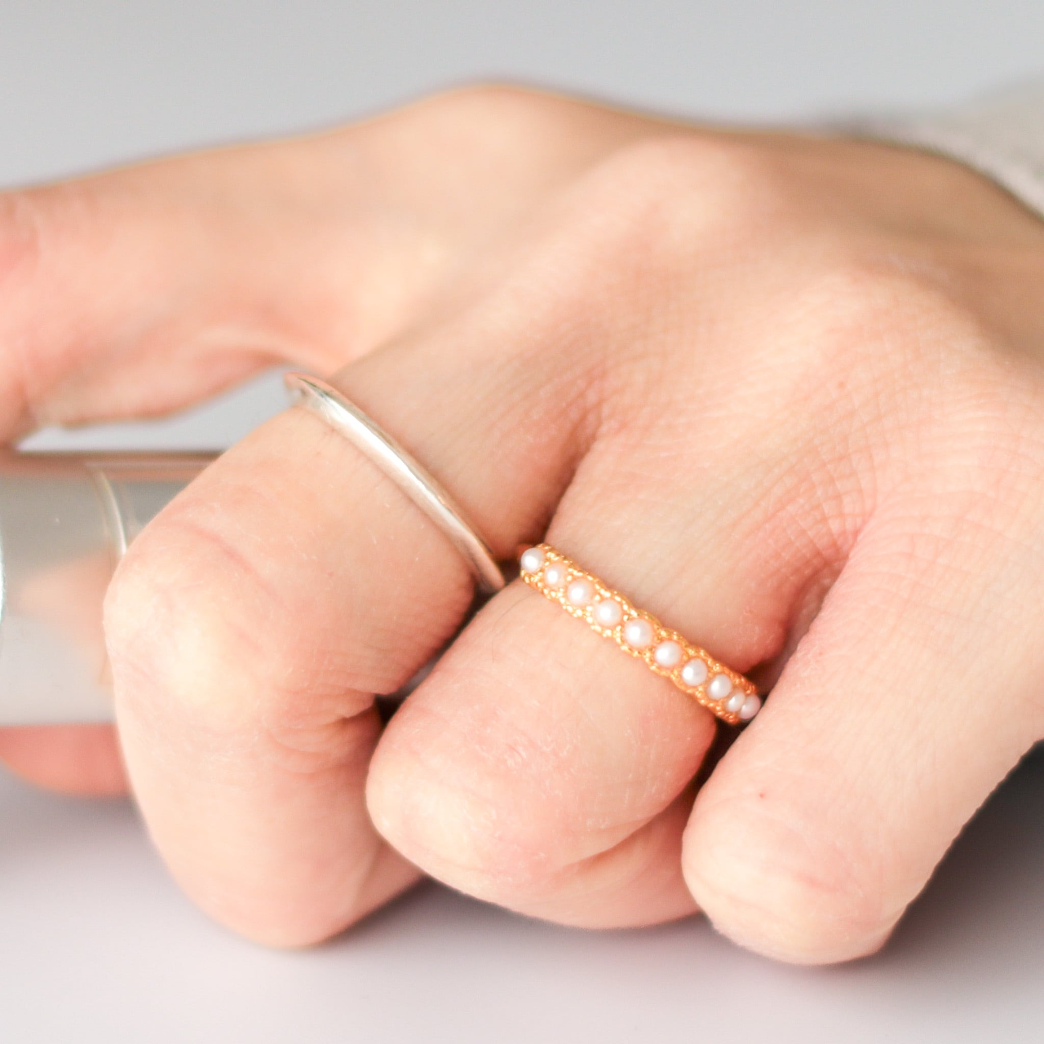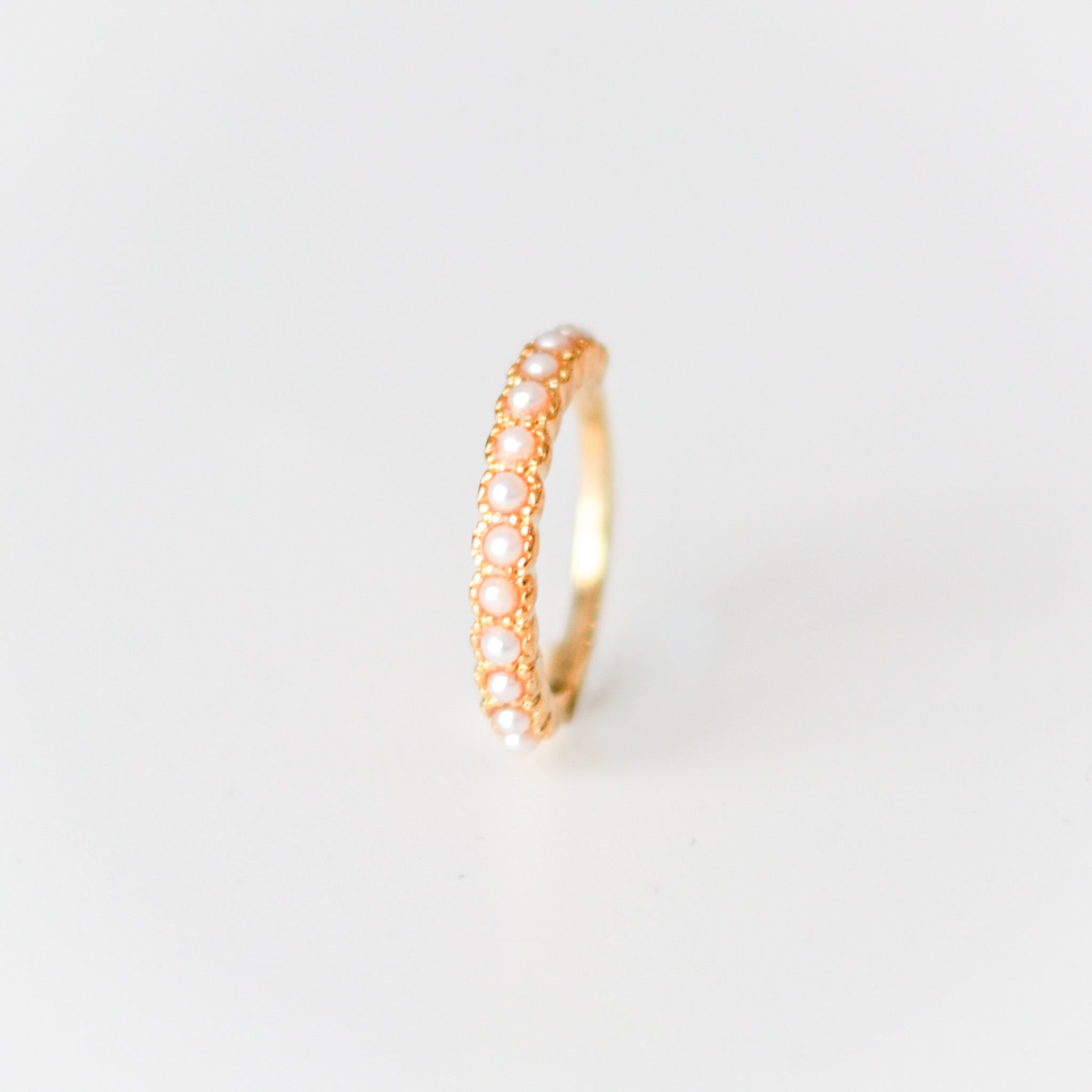 1.8mmという非常に繊細なパールを贅沢に並べたハーフエタニティデザイン。